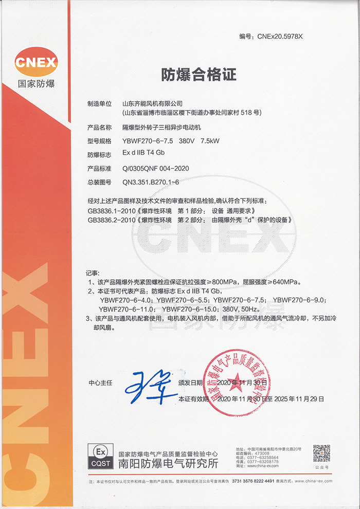 產(chǎn)品名稱: 防爆電機(jī)合格證-YBWF270